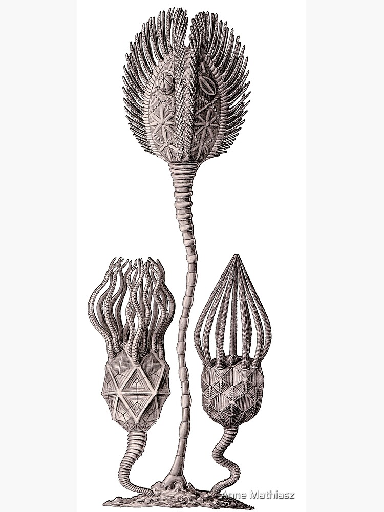 Celle-ci contient la bouche au centre, entourée de cinq structures rayonnant comme des pétales, de formes variables, et supportant des organes filtreurs très ramifiés appelés brachioles, qui permettaient aux cystoïdes de filtrer l'eau pour en piéger le plancton dont ils se nourrissaient,. L'anus se trouvait sur le côté de la thèque. Cette thèque se trouvait à l'extrémité d'une tige faite d'articles circulaires emboîtés (comme chez les crinoïdes à tige), l'autre extrémité étant fixée au substrat.